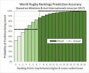 World Rugby’s goal is that rankings can be used as a predictive tool. The idea is to take each team’s current ranking and add 3 points to teams playing at home. Whoever has the higher ranking is